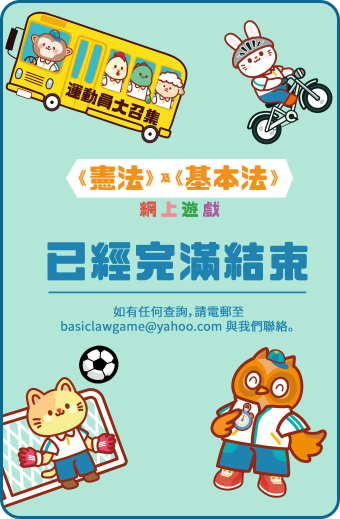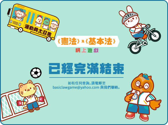是次《憲法》及《基本法》網上遊戲(下稱「本活動」)由政制及內地事務局主辦,雅虎香港有限公司(「雅虎香港」或「協辦機構」)協辦,UDomain Web Hosting Company Limited 負責收集個人資料。主辦機構、協辦機構及UDomain Web Hosting Company Limited的員工及其家屬均不得參加本活動,以示公允。